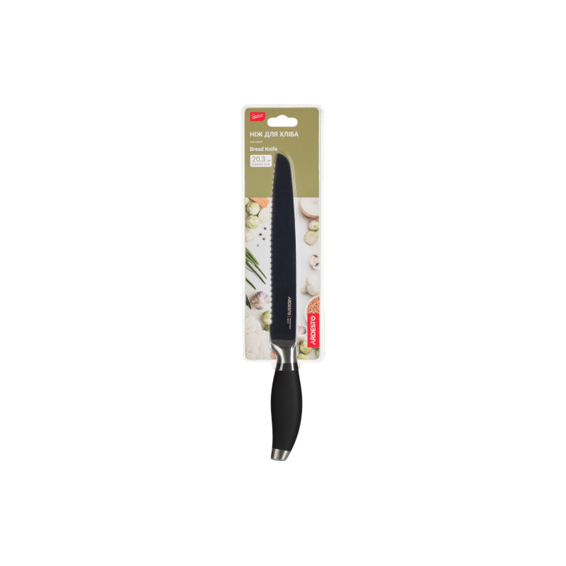Кухонний ніж для хліба ARDESTO Gemini, 20.3см, нержавіюча сталь, пластик, чорний