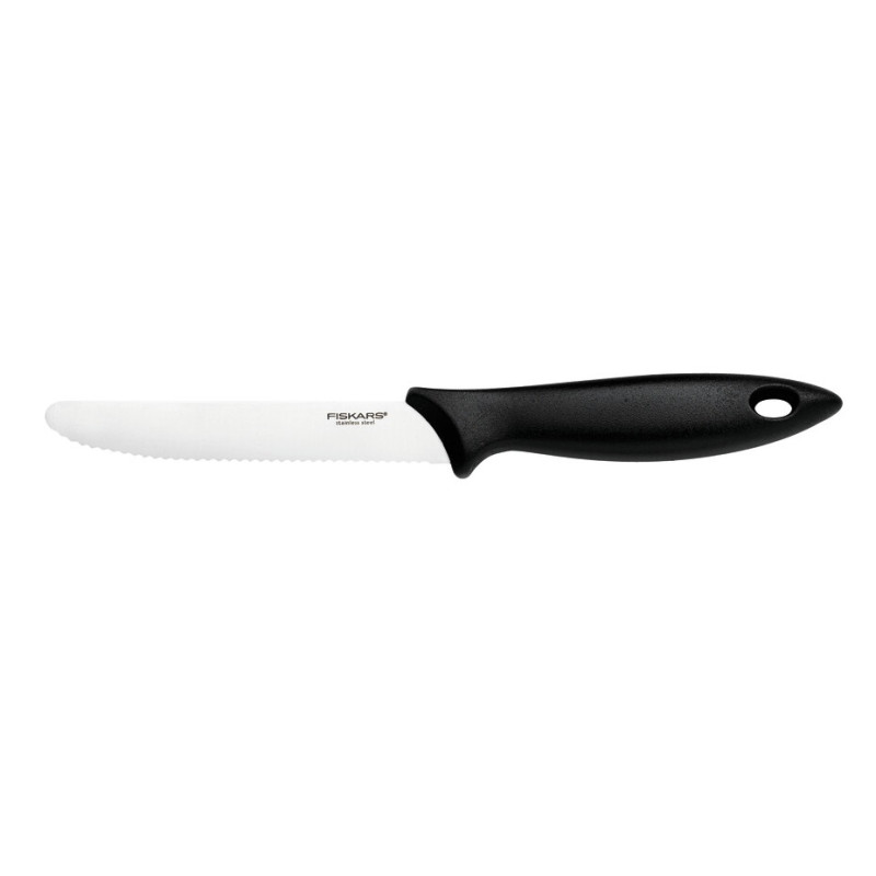 Кухонний ніж для томатів Fiskars Essential, 11.5см, нержавіюча сталь, пластик, чорний