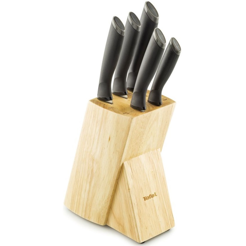 Набір ножів Tefal Comfort з підставкою K221SA04 – ідеальний набір для щоденного домашнього використання. Ергономічна форма рукоятки для оптимального комфорту, зручності використання та ідеального контролю різання. Ножі виготовлені з високоякісної нержавіючої сталі, що гарантує ідеальне нарізування інгредієнтів щоразу. Кожен ніж має особливу форму та призначення, для роботи з певними продуктами. Спеціальна піктограма вказує на кожну комірку ножа на блоці для зручного зберігання. Гумові ніжки, що не ковзають захистять вашу стільницю.