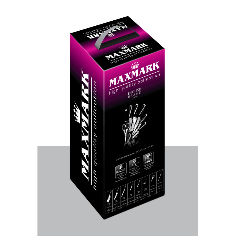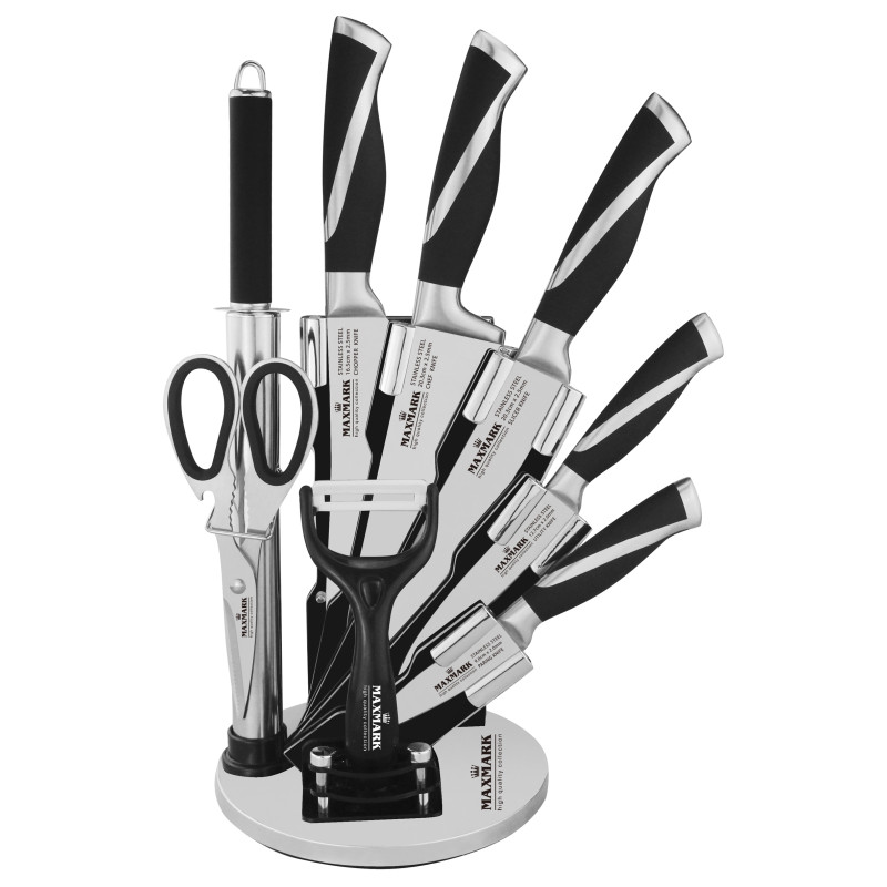 • Підставка, з відділеннями для ножів, яка відкривається як віяло і обертається на 360°