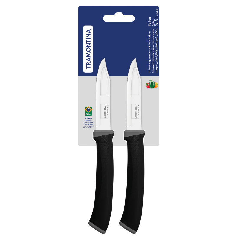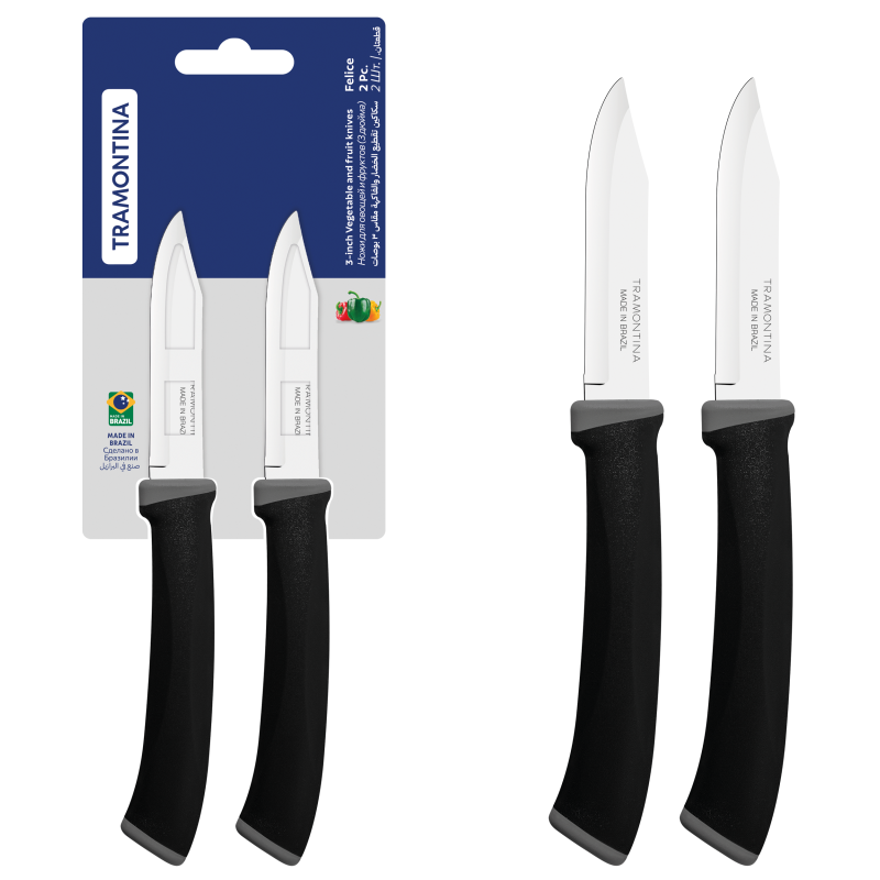 Ножі серії FELICE - ідеальні компаньйони у ваших щоденних кухонних справах. Високоякісна нержавіюча сталь леза, надійні та ергономічні поліпропіленові ручки, що витримують високі температури – ці властивості забезпечують довговічність використання, поєднану з винятковою силою розрізання харчових продуктів. Ручки представлені в класичних чорному та синьому кольорах. Ножі FELICE добре витримують миття в посудомийній машині. Вони створені, щоб максимально спростити вашу кухонну рутину!