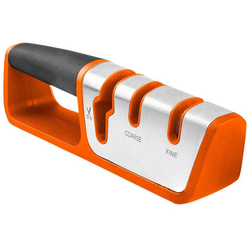 Точилка для ножів і ножиць Neo Tools, 54х195х38мм, 2 етапи заточування, карбід вольфраму та кераміка, ABS-пластик та TPR гума