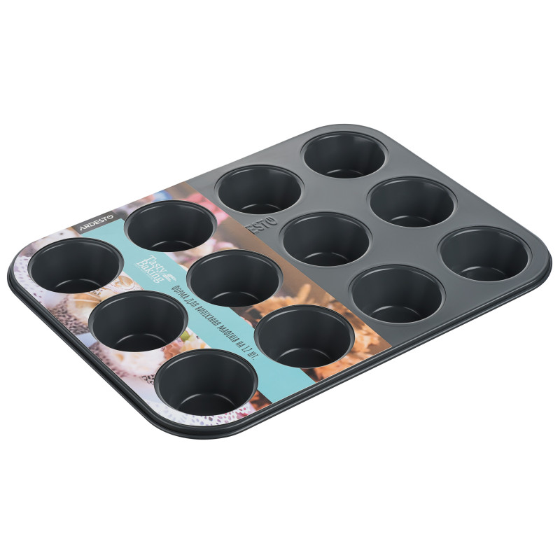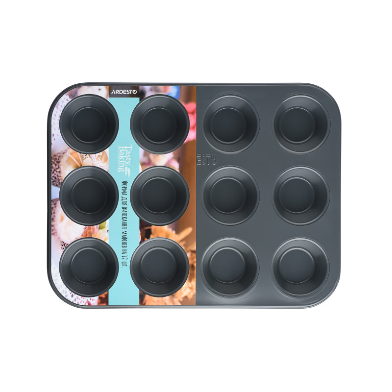 Форма для випікання мафінів ARDESTO Tasty baking, 35х26.5х3см, 12шт, вуглецева сталь, сіро-блакитний