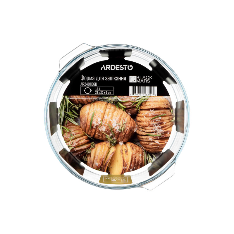 Форма для запікання ARDESTO серії Black Mars поєднує практичність і універсальність. Її виготовлено з екологічного міцного боросилікатного скла, яке може витримувати температуру від -40 до +400 °C. Об’єм становить 1,5 л. Завдяки прозорості скла легко контролювати процес приготування без необхідності постійно відчиняти дверцята печі. Кругла форма розміром 23 × 20,8 × 7 см згодиться для приготування запіканок, різноманітних видів м’яса, риби, пирогів тощо. Виріб можна мити в посудомийній машині.