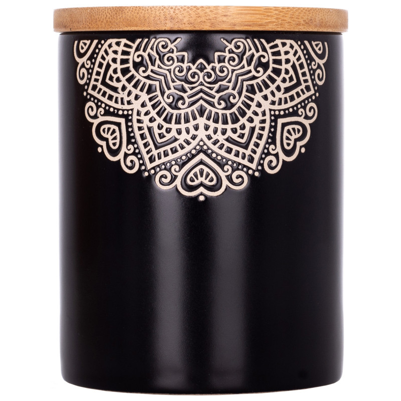 Самобутній етнічний орнамент у поєднанні з натуральними матеріалами, перетворює звичайну ємність для сипучих продуктів в елегантну прикрасу інтер'єру з вишуканим і оригінальним дизайном.