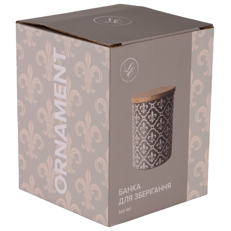 Банка Ornament Об'єм: 0.5 л Матеріал: кераміка Матеріал кришки: бамбук Колір: коричневий