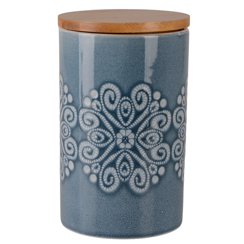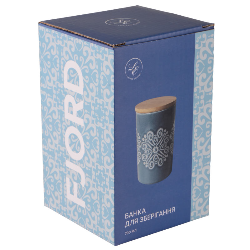 Банка Ornament Об'єм: 0.7 л Матеріал: кераміка Матеріал кришки: бамбук Колір: блакитний