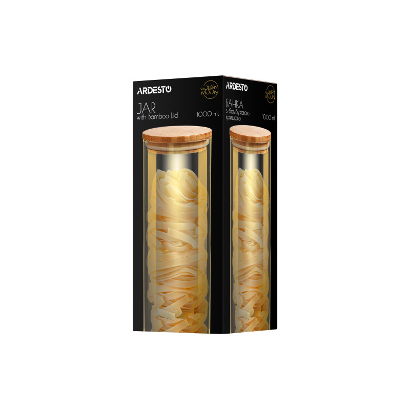 Якщо потрібно навести лад на кухні, у пригоді стане банка ARDESTO Golden Moon. Ємність заввишки 22 см й об’ємом 1 літр має круглу форму та виготовлена з боросилікатного скла, що має елегантний золотавий відтінок. Також у комплекті до банки є бамбукова кришка. Виріб допустимо мити в посудомийній машині.