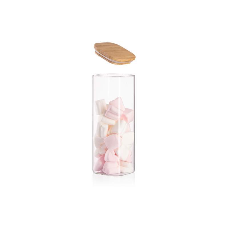 Банка для зберігання ARDESTO Midori, 1000мл, скло, бамбук, квадратна, прозорий