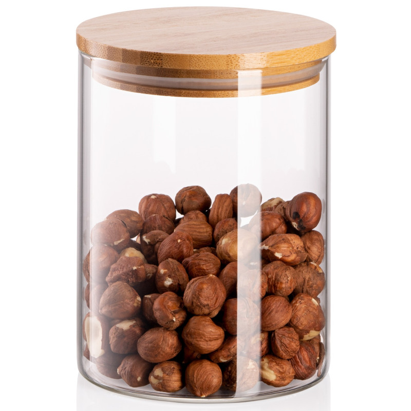 Банка для зберігання ARDESTO Midori, 540мл, скло, бамбук, кругла, прозорий