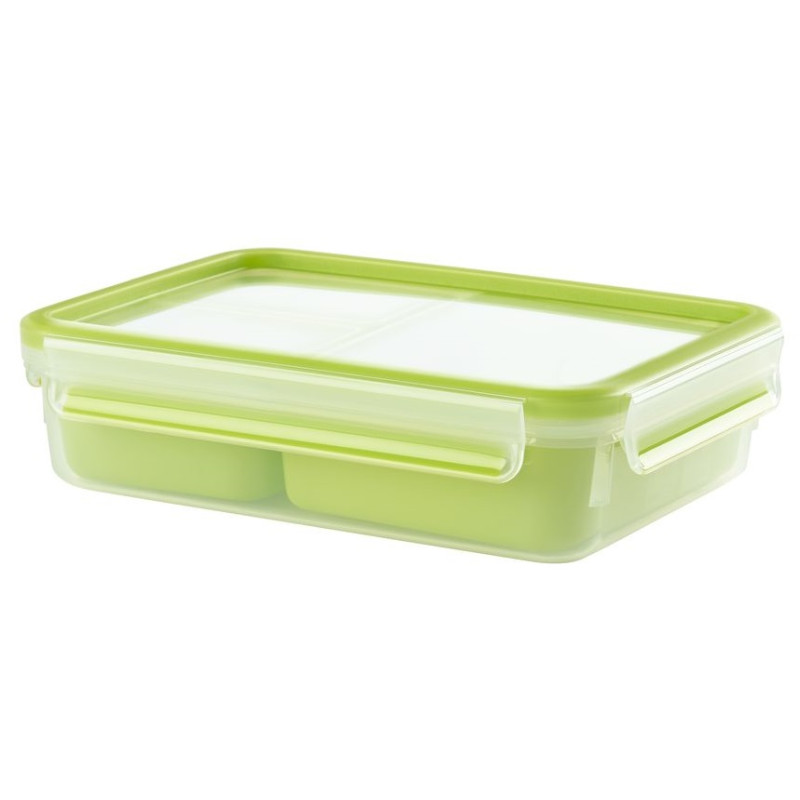 Контейнер Tefal MASTERSEAL TO GO поєднує в собі мобільність, гереметичність та безпеку. Контейнер мобільний, зручний для транспортування та зберігання різних продуктів, має роздільники для більшої зручності. Контейнер є безпечним і не містить бісфенол-А, що є безпечним для здоров'я, в т.ч. для дітей. 100% герметичний контейнер ідеальне зберігання, безпечне транспортування та оптимальний захист від запахів.
