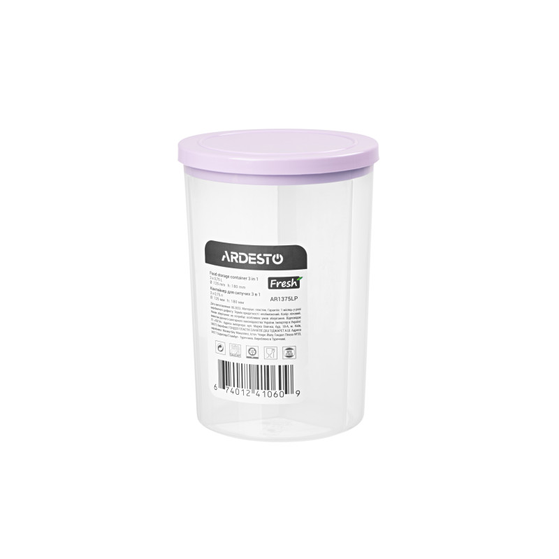 Контейнер для зберігання харчових продуктів 3 в 1 ARDESTO Fresh, 3х0.75л, пластик, ліловий