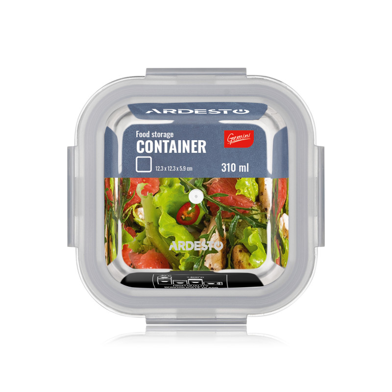 Контейнер для зберігання харчових продуктів ARDESTO Gemini 0.31л, боросилікатне скло, пластик, квадратний, прозорий
