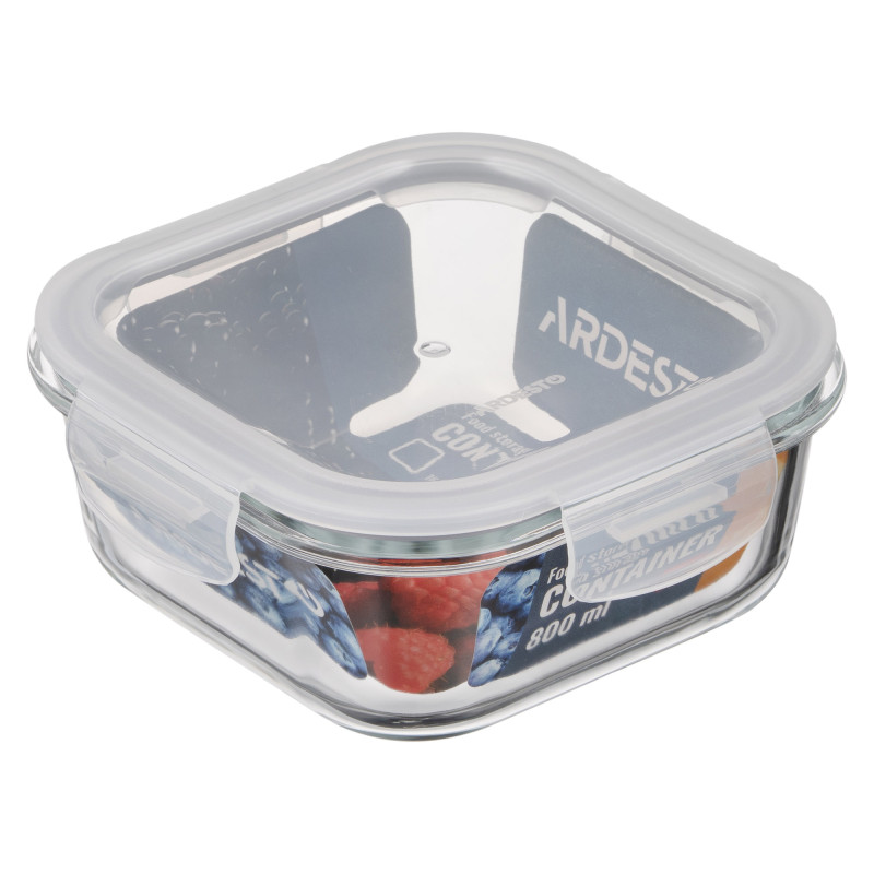 Контейнер для зберігання харчових продуктів ARDESTO Gemini 0.8л, боросилікатне скло, пластик, квадратний, прозорий