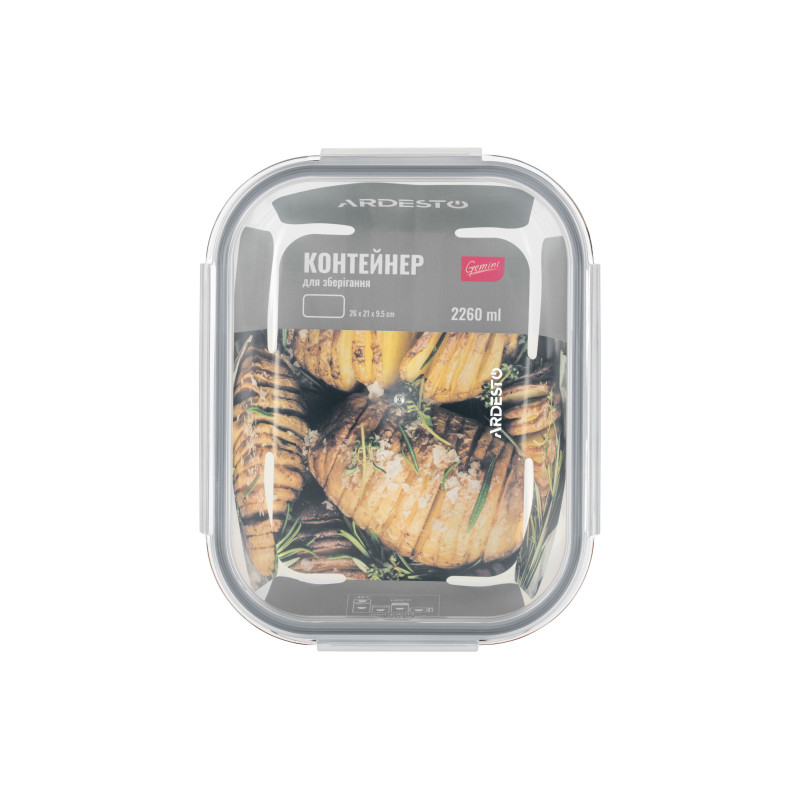 Контейнер для зберігання харчових продуктів ARDESTO Gemini, 2.26л, боросилікатне скло, пластик, прямокутний, прозорий