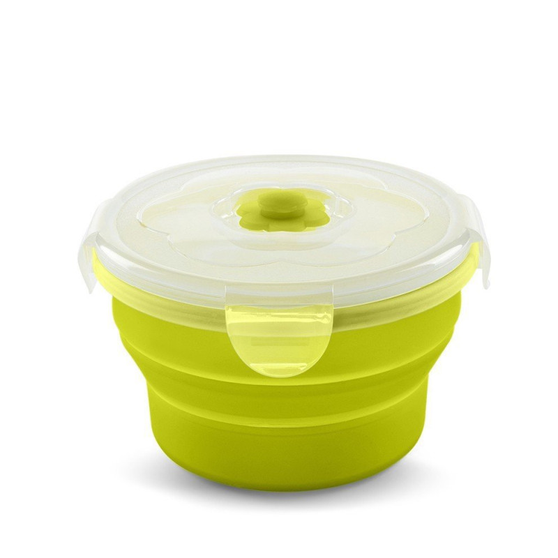 Силіконовий контейнер для зберігання харчових продуктів. Універсальний контейнер для будь-яких продуктів. Контейнер підходить для зберігання продуктів харчування вдома, його також зручно брати в дорогу. Конструкція розбірна, у розкладеному стані займає мало місця. Оснащений захисною кліпсою на кришці. Може використовуватися в мікрохвильових печах, в холодильнику або морозильній камері. Силікон запобігає утворенню бактеріям у продуктах.