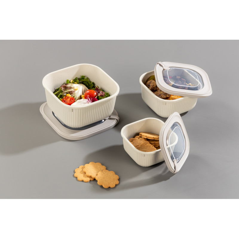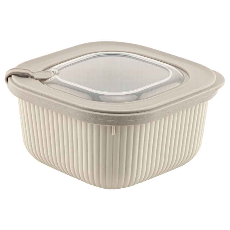 - Щільна кришка: кришка контейнера щільно закривається, що дозволяє захистити вміст від проникнення вологи, сторонніх запахів і забруднень, зберігаючи продукти свіжими довше.