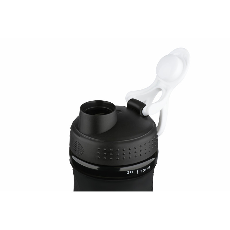 Пляшка для води на 1 л з кришкою, клапаном для пиття, прогумованою вставкою та ручкою. Для зручності на прозорій колбі є мірна шкала.