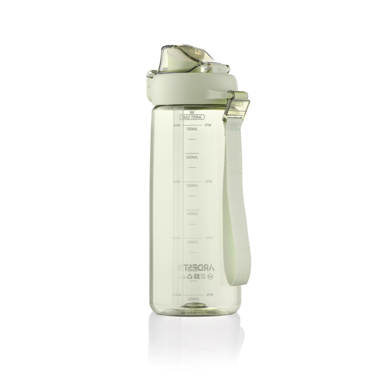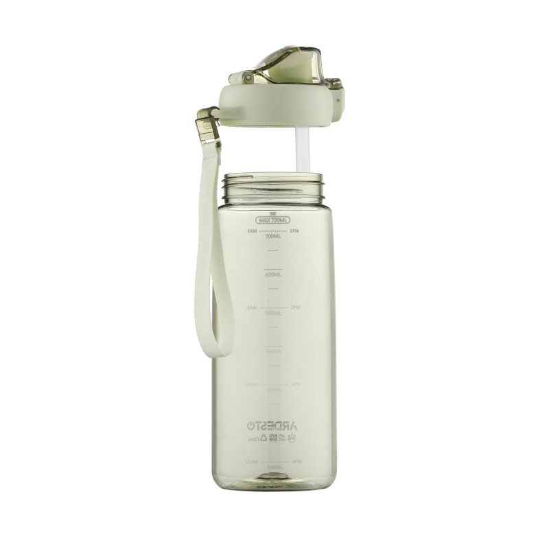 Пляшку для води ARDESTO Trip темно-зеленого кольору виготовлено в сучасному дизайні з безпечного пластику. Об’єм становить 720 мл. Оснащено надійним механізмом відкривання, який унеможливлює проливання рідини. Можна мити в посудомийній машині.