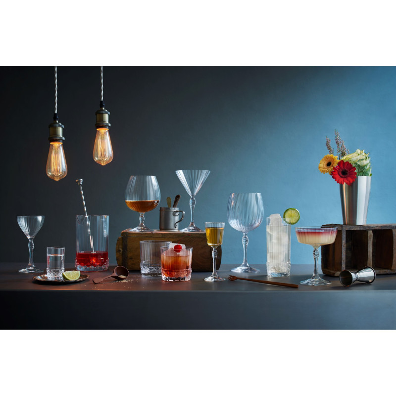 Цей келих є частиною елегантної колекції, натхненної 1920-ми роками, яка переносить гламур модних американських джаз-барів до сьогоднішнього дня: де розмова велася про мистецтво, а атмосфера була безпрецедентною новизною і ентузіазмом. Цей келих об'ємом 250 мл має дуже вишуканий і оригінальний вінтажний дизайн. Ніжка прикрашена витончено обробленим каплевидним орнаментом, а чашка, що має форму перевернутого трикутника, багатогранна. Келих ідеально підходить для коктейльної сервізу Мартіні.