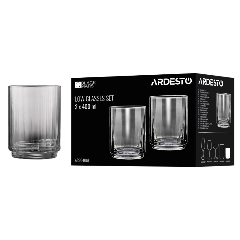Набір склянок низьких ARDESTO Black Mars Alcor 400мл, 2шт, скло, сірий