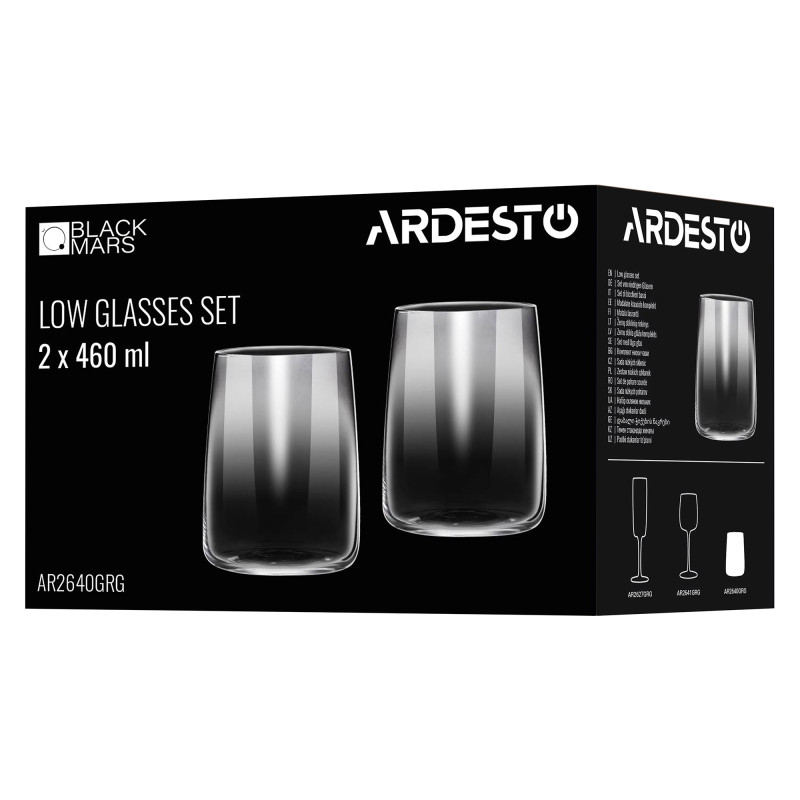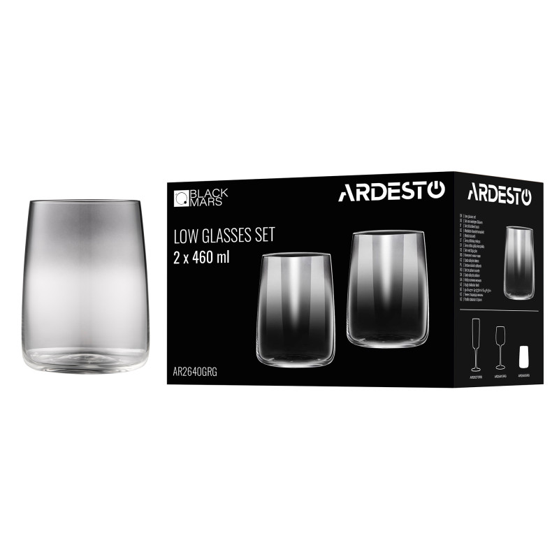 Набір склянок низьких ARDESTO Black Mars Mira 460мл, 2шт, скло, сірий