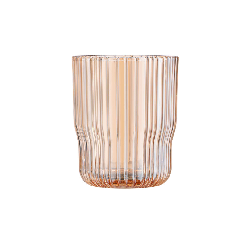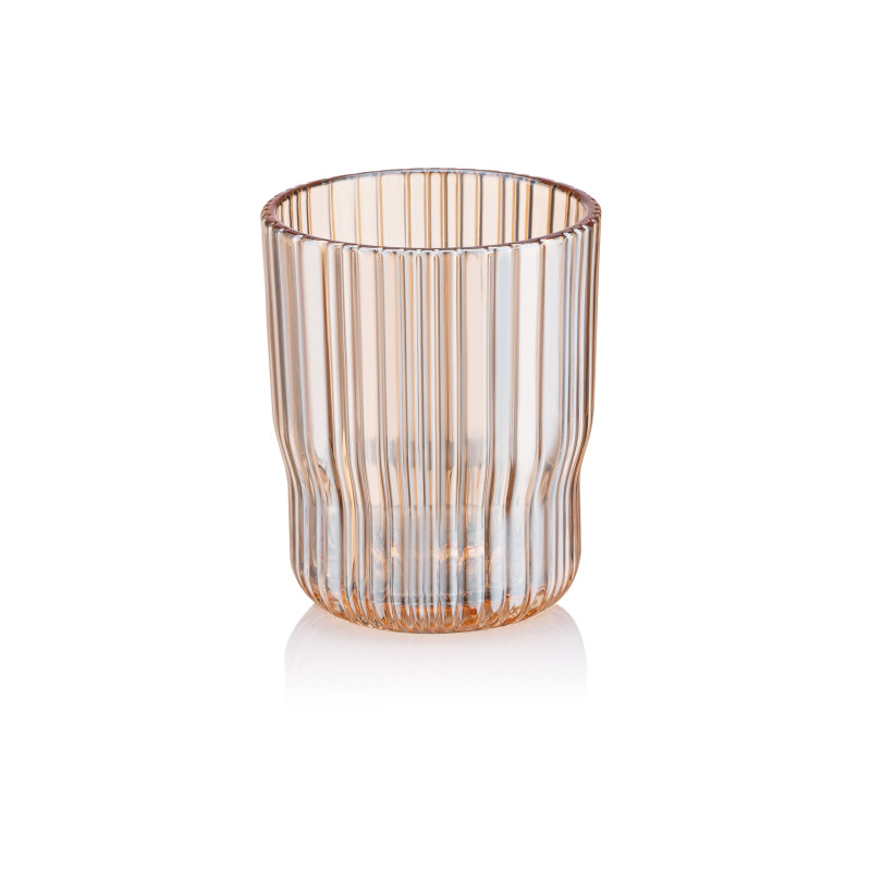 Ексклюзивний набір низьких склянок ARDESTO Golden Moon – втілення вишуканості й функціональності: виготовлені з якісного скла золотистого кольору, вироби мають ребристі стінки, які зумовлюють оригінальний і стильний вигляд. За висоти 10 см і верхнього діаметра 8 см об’єм склянок становить 300 мл, що робить їх універсальними й придатними для подавання різноманітних напоїв. Допустиме миття в посудомийній машині.