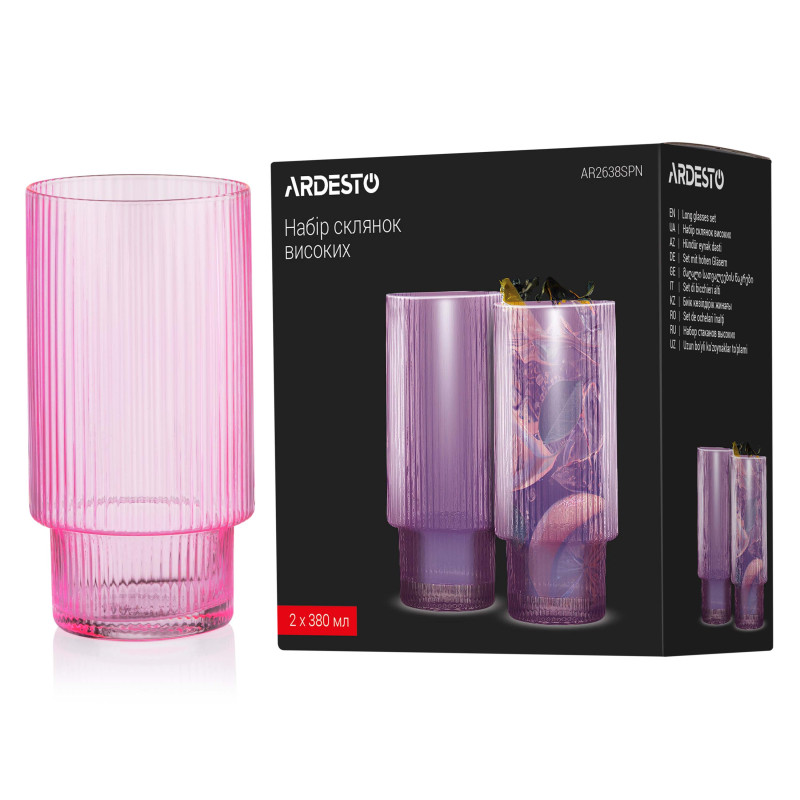 Набір склянок високих ARDESTO 380мл, 2шт, скло, рожевий