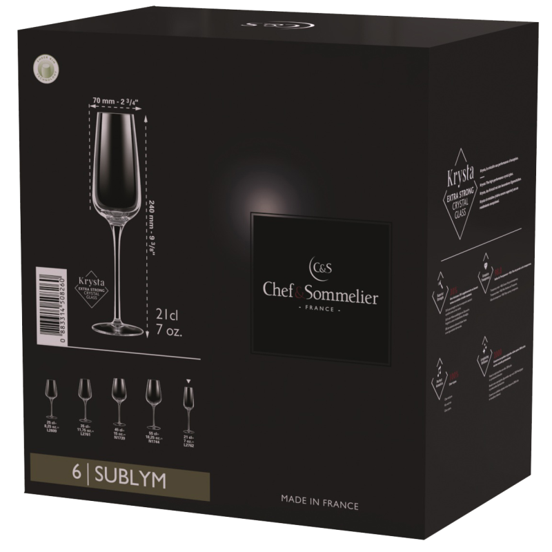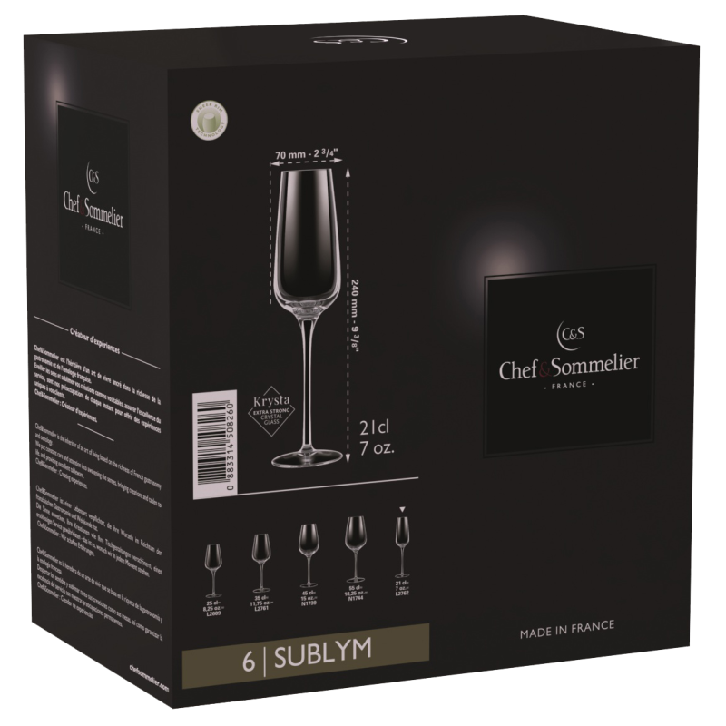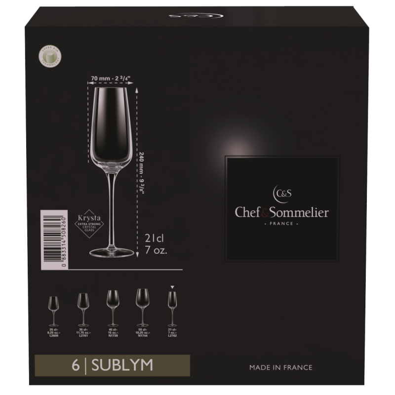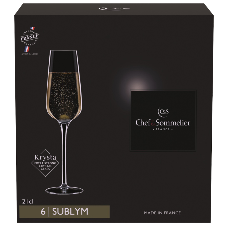 Бренд Chef&Sommelier належить компанії ARC International - лідеру серед виробників скляного посуду. Серед колекцій Chef&Sommelier є свої келихи для кожного сорту вина. Головною особливістю келихів Chef & Sommelier є унікальний матеріал Kwarx, запатентований компанією ARC International. Це абсолютно прозоре скло. Келихи з Kwarx мають приємний протяжний дзвін, прозорість і блиск. У той же час вони неймовірно міцні, захищені від відколів і подряпин навіть при частому митті в посудомийній машині. Прозорість матеріалу не спотворює справжній колір вина. Форма келихів, увігнута до вершини, дозволяє концентрувати смак вина у верхній частині келиха. Велика площа сприяє насиченню вина киснем і розкриттю всього букета. У келихах Chef&Sommelier аромат вина спрямовується догори, що сприяє повноцінному сприйняттю кожного його компонента.