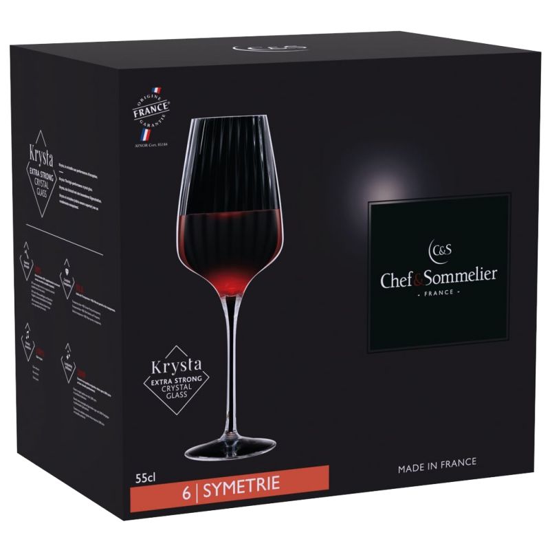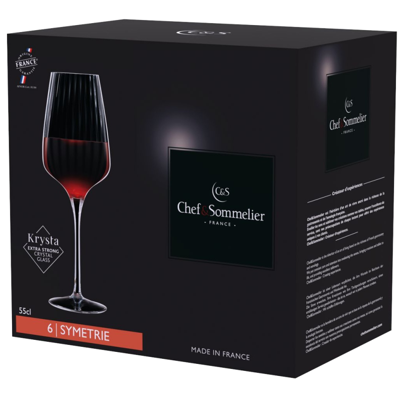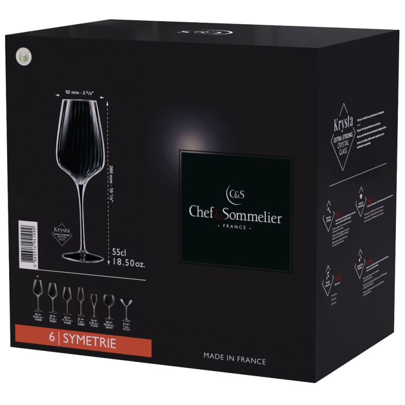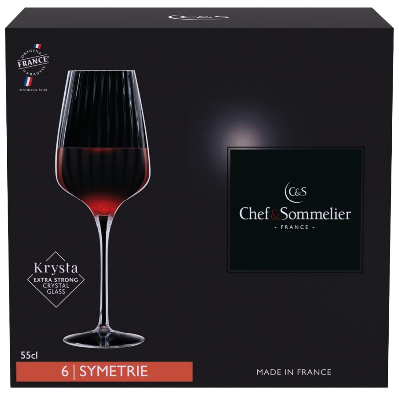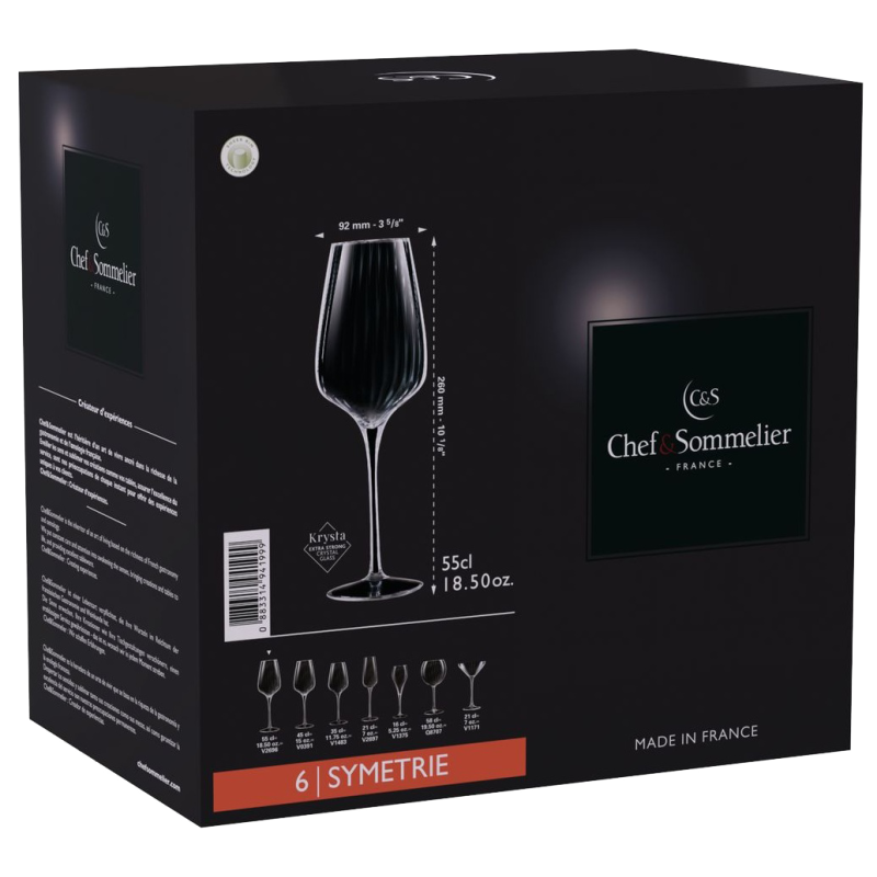Серія Symétrie – це новий вид колекції від Chef&Sommelier. Ця лінія з широким асортиментом продукції відповідає потребам рестораторів, барменів і просто поціновувачів незвичного та естетичного. Особливістю цієї колекції є вертикальні лінії, що проходять уздовж келихів, створюючи гіпнотичний оптичний ефект.