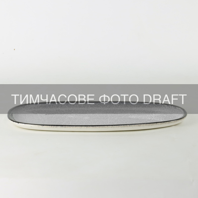 Блюдо серії Daiano сірого кольору виготовлено з порцеляни, яка вирізняється міцністю та витонченим характером. Елегантна пласка форма виробу має стриманий і водночас виразний вигляд. Розмір посуду становить 28 × 16,6 × 1,4 см. Поверхня блюда має крапчасту текстуру з легким блиском, додаючи глибини та декоративної виразності. Виріб можна мити в посудомийній машині, зберігаючи первинний вигляд і охайність за щоденного користування.