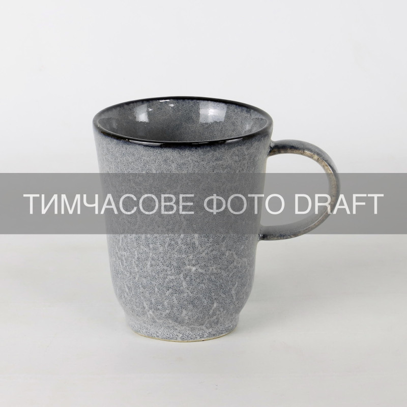 Чашку серії Daiano сірого кольору виготовлено з порцеляни, яка вирізняється витонченістю та стійкістю. Об’єм 350 мл і розмір 12,1 × 8,6 × 10,6 см створюють зручну форму для напоїв. Зовнішня поверхня має легкий блиск і крапчасту текстуру, яка додає виробу характеру. Внутрішня частина темніша, що створює контраст і глибину. Чашку можна мити в посудомийній машині, зберігаючи первинний вигляд.