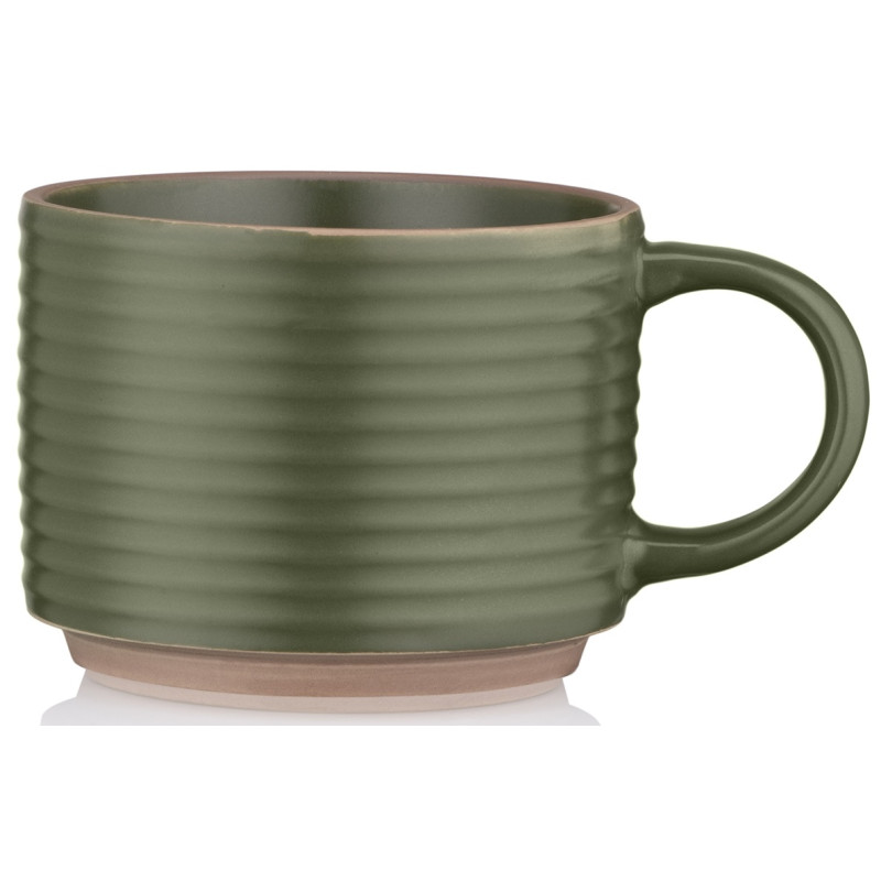 Керамічна чашка серії Anzio має об’єм 300 мл і виконана в елегантному зеленому кольорі. Є вдалим вибором на щодень, адже зручна щодо догляду – можна мити в посудомийній машині й використовувати в мікрохвильовій печі. Верхній діаметр становить 9,2 см за висоти 7,2 см, що зумовлює зручність.