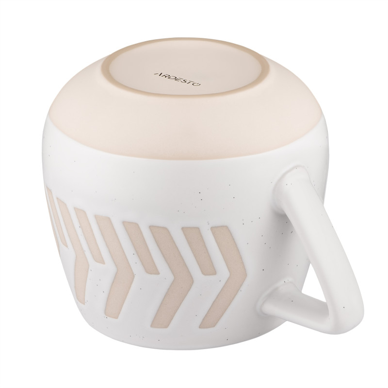 Чашка ARDESTO серії Auro об’ємом 440 мл – ліпший вибір як для ранкових ритуалів, так і для затишних вечорів із улюбленим напоєм. Виріб виготовлено з кераміки – екологічного, міцного та довговічного матеріалу, який забезпечить тривалий термін слугування. Крім того, кераміка довго зберігає напій гарячим і не вбирає запахів. Дизайн у білому кольорі з графічним візерунком бежевого відтінку додає естетичної привабливості. Виріб можна використовувати в мікрохвильовій печі та мити в посудомийній машині. Ця стильна чашка буде вдалим подарунком для близьких і друзів.
