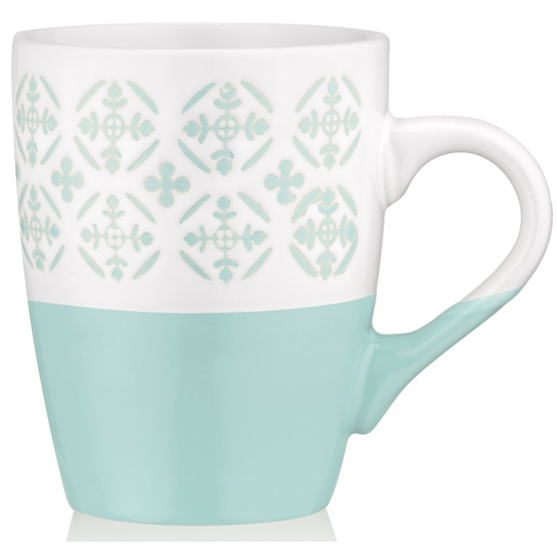 Яскраву та стильну чашку серії Ornament виготовлено з якісної кераміки. Її об’єм становить 320 мл, основні кольори – блакитний і білий, дизайн гармонійно доповнено геометричним візерунком. За висоти 10,5 см верхній діаметр складає 8,3 см. Згодиться для щоденного використання, адже придатна до миття в посудомийній машині та використання в мікрохвильовій печі.