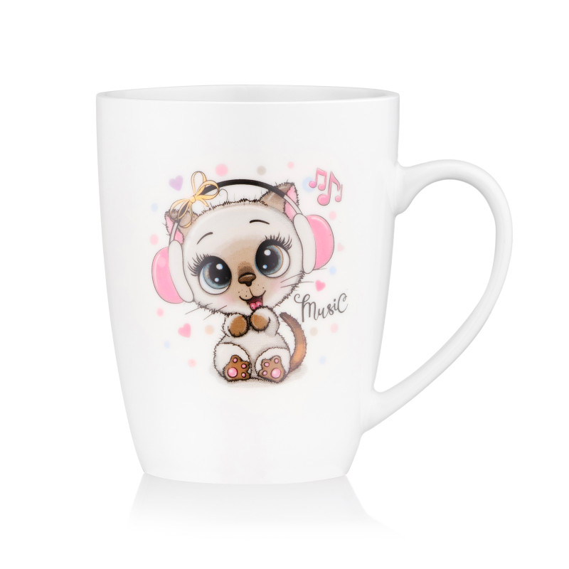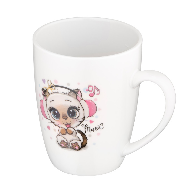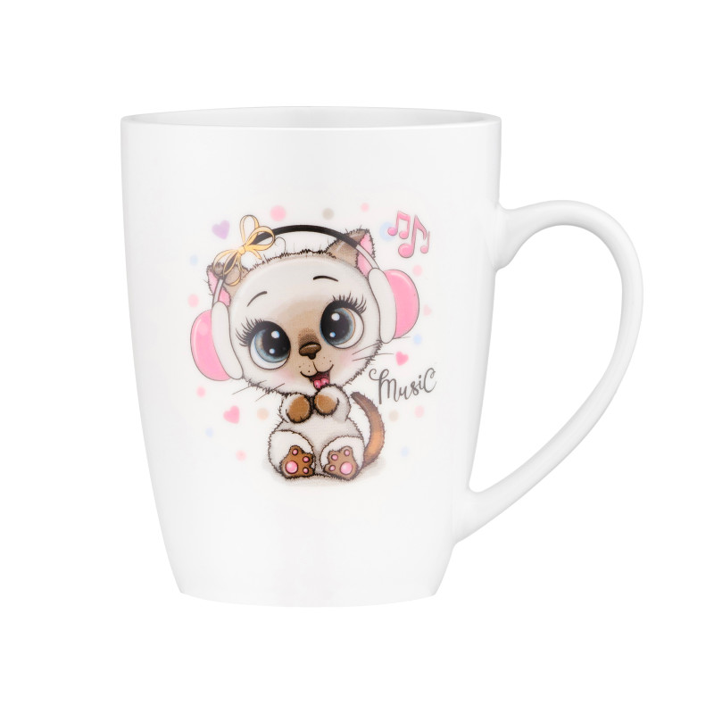 Чашку ARDESTO Music об’ємом 320 мл виготовлено з якісної порцеляни й доповнено ложкою з нержавіючої сталі. Основний колір – білий, а миле зображення підкреслює непересічний дизайн. Виріб має універсальний розмір – верхній діаметр 8,3 см за висоти 10,5 см, що зумовлює зручність за щоденного використання. Придатна до миття в посудомийній машині та використання в мікрохвильовій печі.