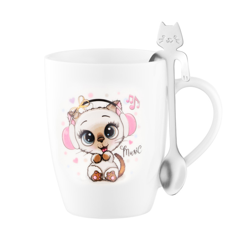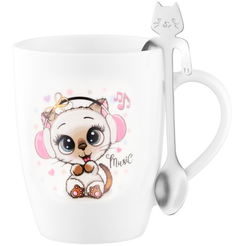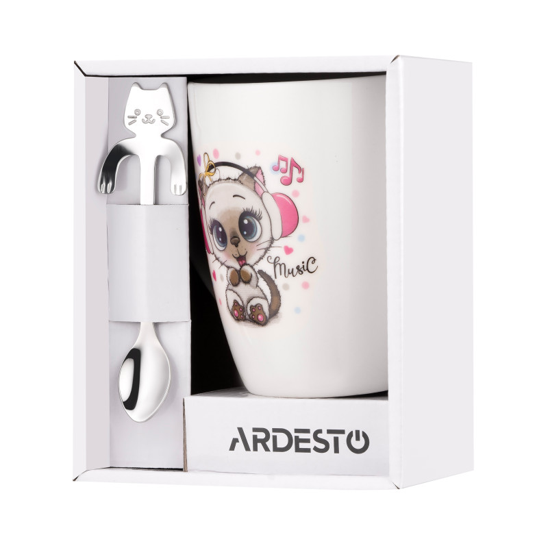 Чашка з ложкою ARDESTO Music, 320мл, порцеляна, нержавіюча сталь, білий