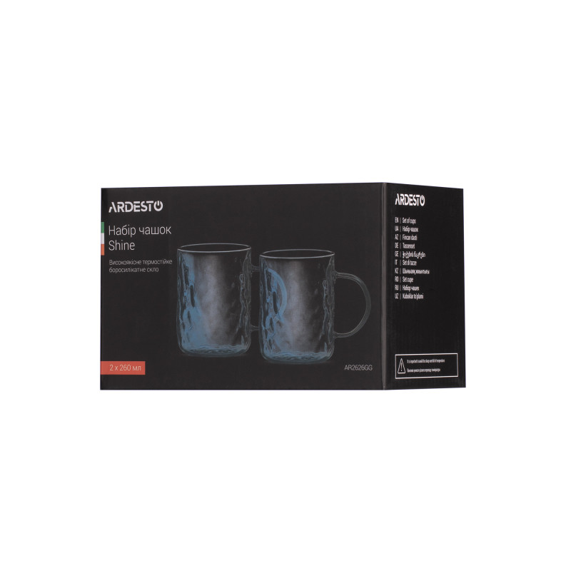 Набір чашок ARDESTO Shine, 260мл, 2шт, боросилікатне скло, сірий