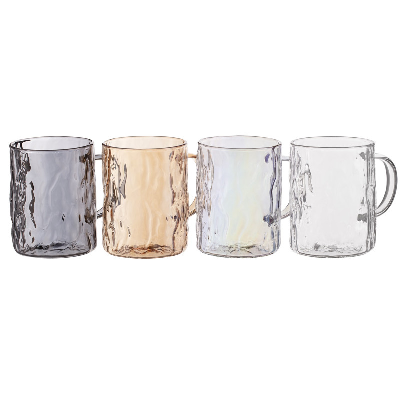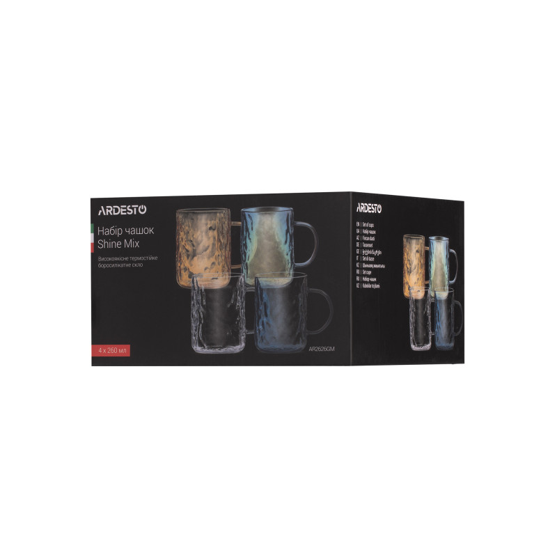 Набір чашок ARDESTO Shine mix, 260мл, 4шт, боросилікатне скло, прозорий, золотистий, сірий, перламутровий