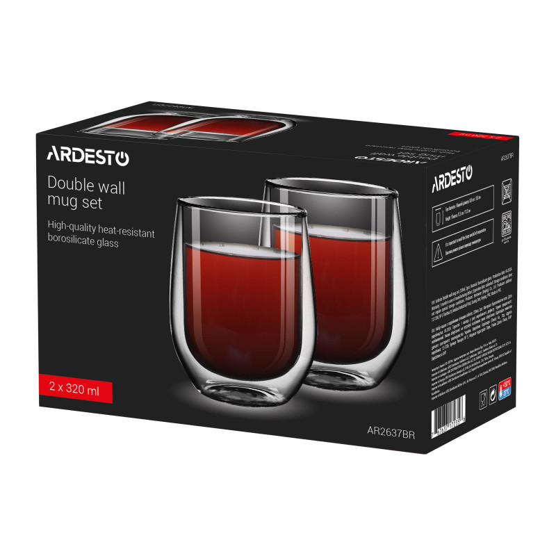 Набір чашок з подвійними стінками ARDESTO, 320мл, 2шт, боросилікатне скло, прозорий