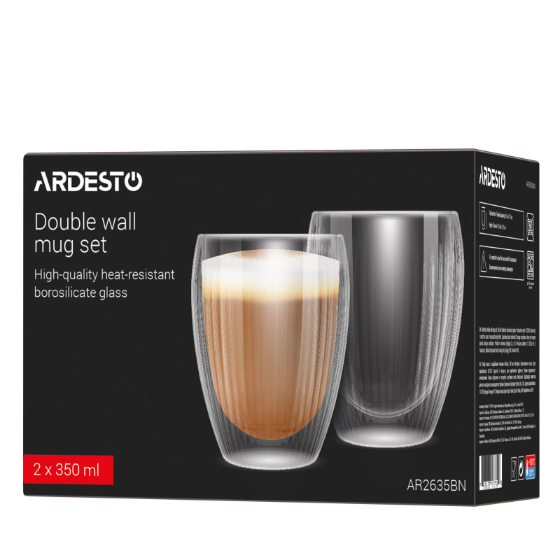 Відкрийте для себе чарівність простоти та елегантності з набором чашок із подвійними стінками ARDESTO, які виготовлено з якісного боросилікатного скла, що зумовлює їхню термостійкість від -20 до +150 °C. У наборі – дві чашки, об’єм кожної становить 350 мл за висоти 11,4 см і верхнього діаметра 8,1 см. Вироби придатні до миття в посудомийній машині (до 50 циклів) і використання в мікрохвильовій печі за температури до 100 °С.