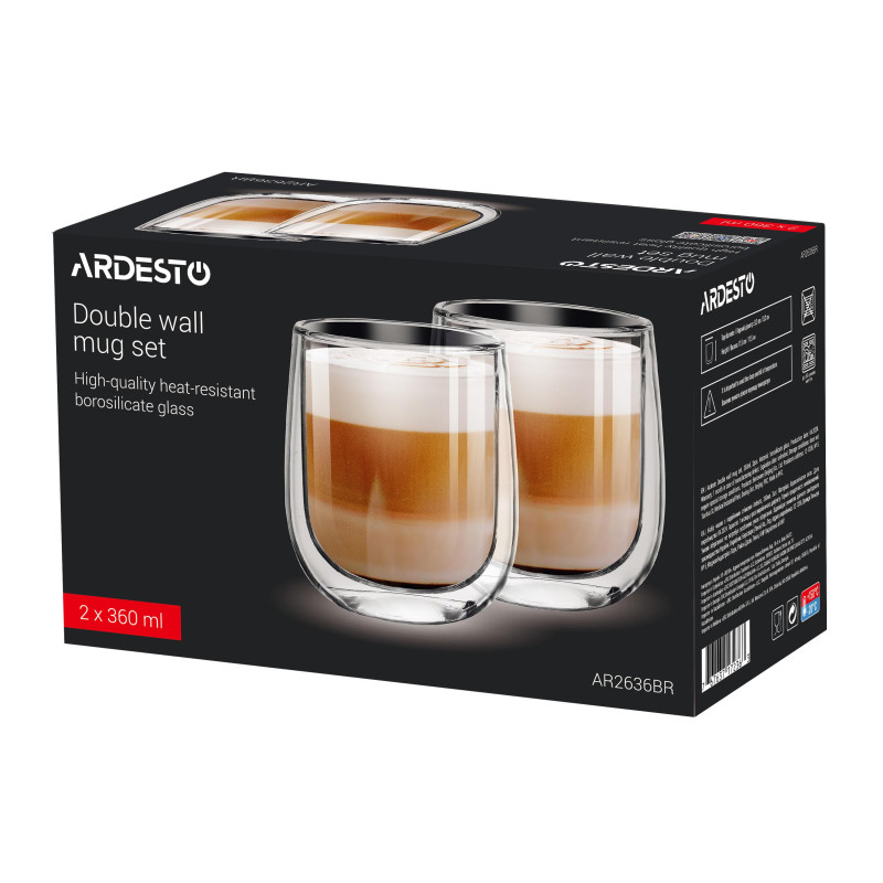 Набір чашок з подвійними стінками ARDESTO, 360мл, 2шт, боросилікатне скло, прозорий