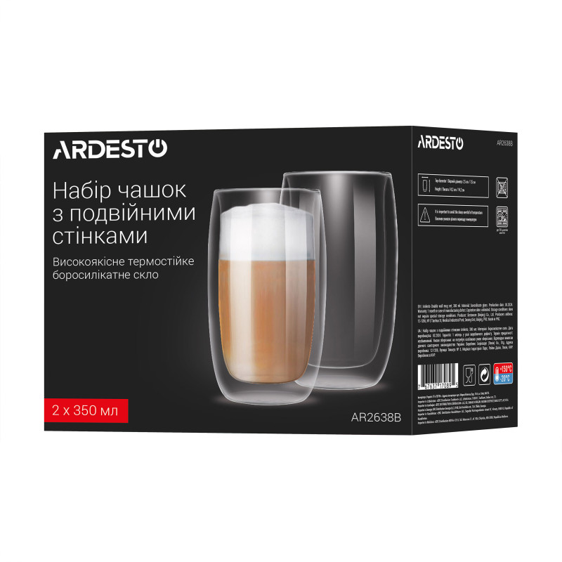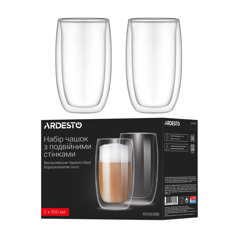 Набір чашок з подвійними стінками ARDESTO, 380мл, 2шт, боросилікатне скло, прозорий