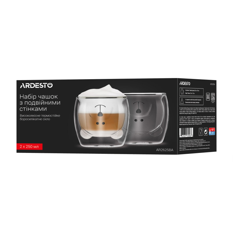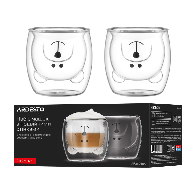 Набір чашок з подвійними стінками ARDESTO Animals, 250мл, 2шт, боросилікатне скло, прозорий