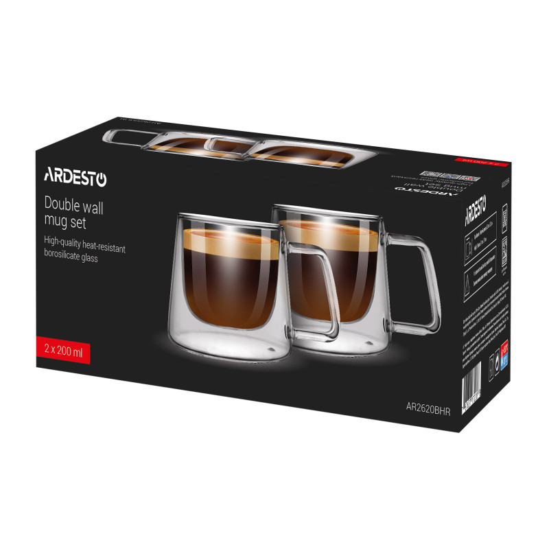 Набір чашок з ручками і подвійними стінками ARDESTO, 200мл, 2шт, боросилікатне скло, прозорий