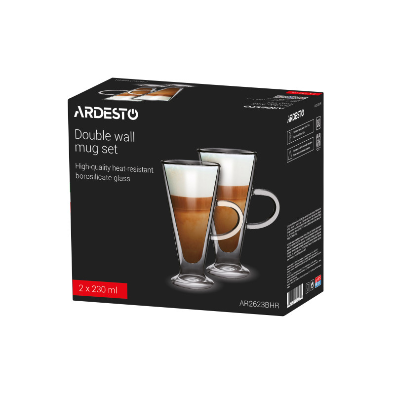 Набір чашок з ручками і подвійними стінками ARDESTO, 230мл, 2шт, боросилікатне скло, прозорий