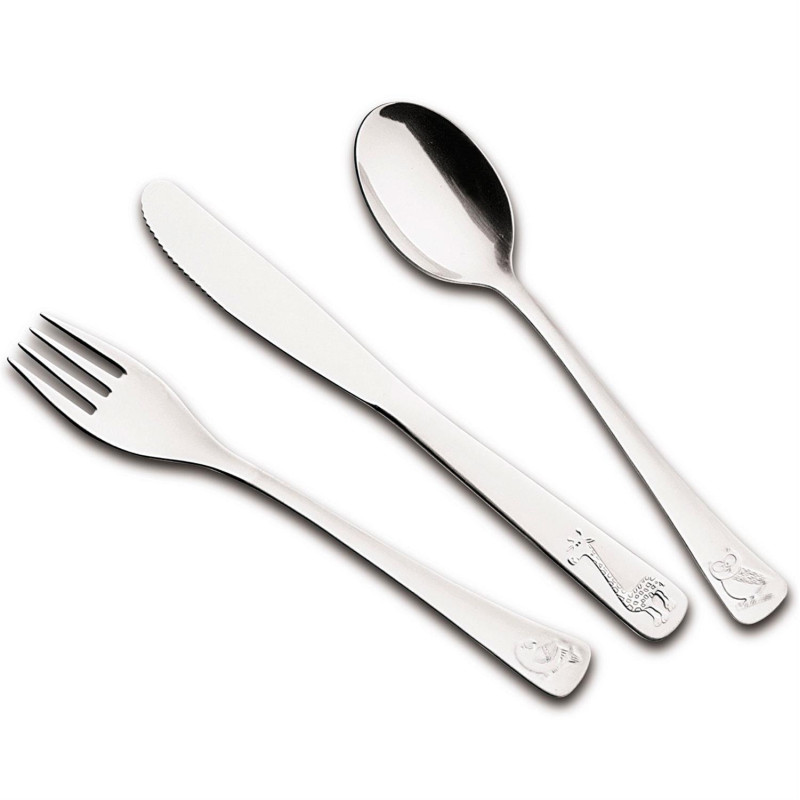 - Столові прибори виготовлені з нержавіючої сталі, найбільш гігієнічного матеріалу. Не змінюють і не вбирають смак і аромат страв, не схильні до корозії.