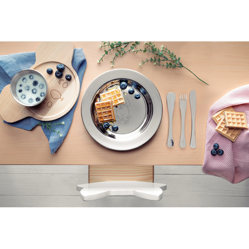 - Дитячий набір Tramontina Baby Le Petit blue виготовлений із нержавіючої сталі 18/10, довговічної й абсолютно не схильної до корозії.