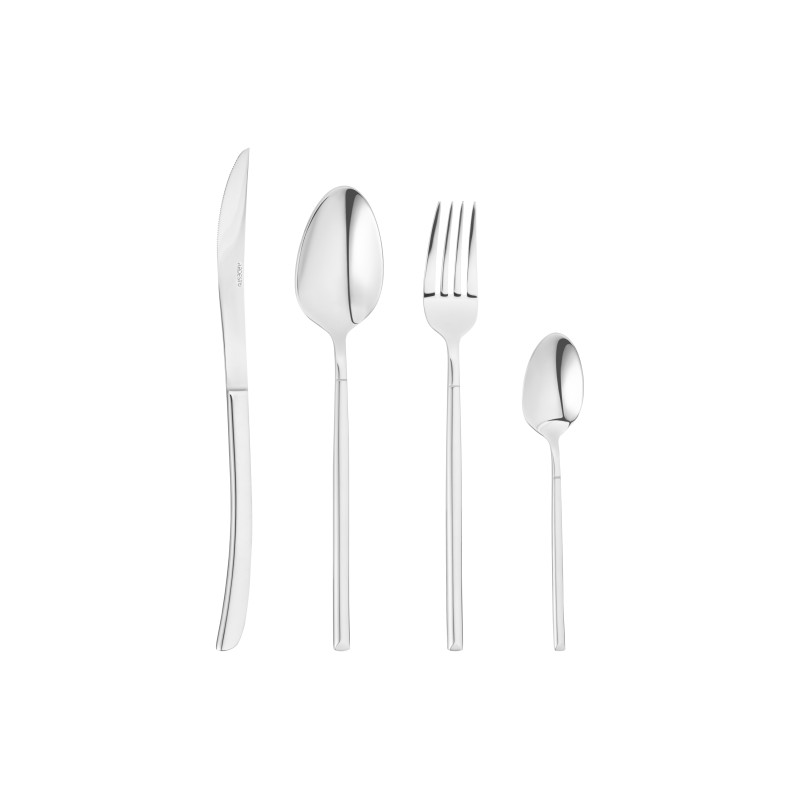 Набір столового приладдя з 24 предметів. Включає в себе: ложки, виделки і ножі. Приладдя виконано з нержавіючої сталі з дзеркальною поліровкою.