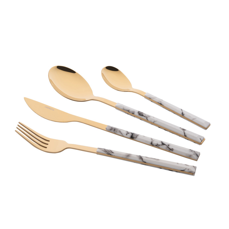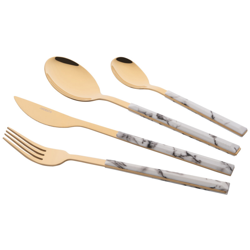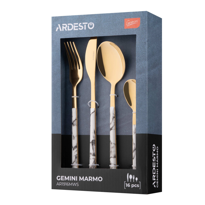 Набір столових приборів ARDESTO Gemini Marmo, 16 приборів, нержавіюча сталь, пластик, золотисто-білий